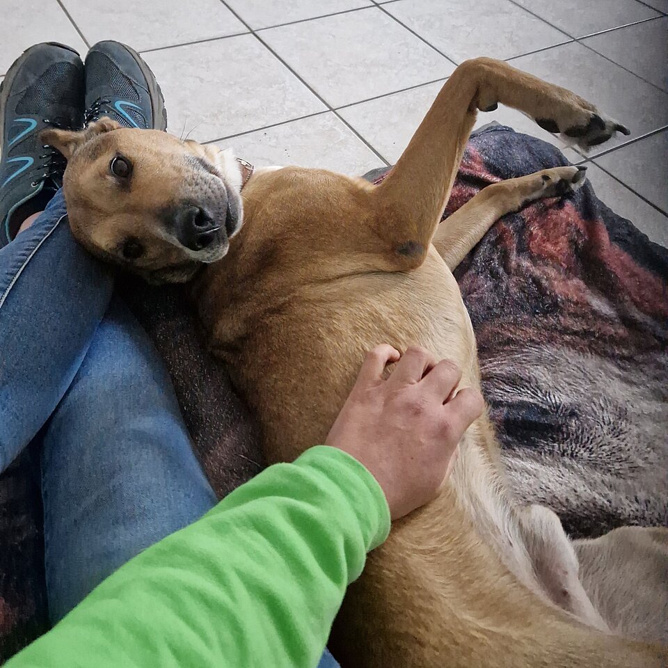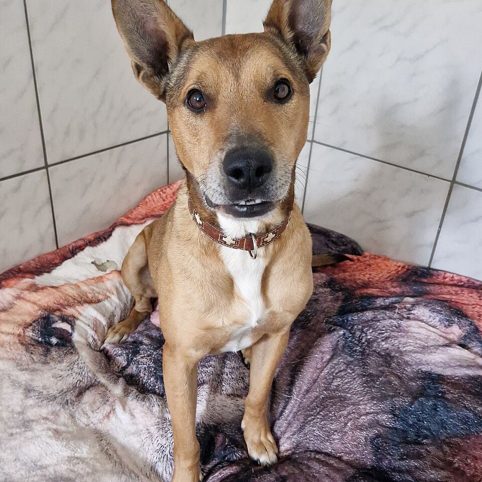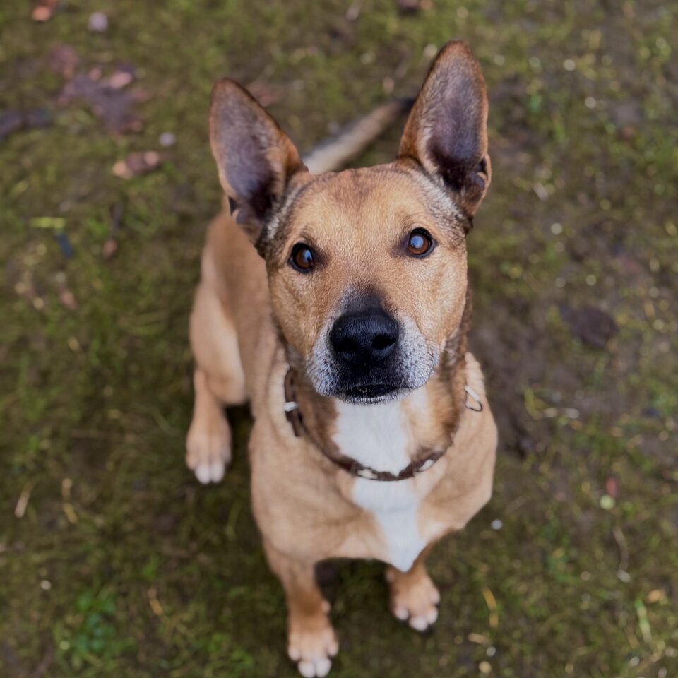 Balisto ist ein richtiges Powerpaket, der seine neue Familie ordentlich auf Trab halten wird. Auch wenn man es ihm äußerlich nicht ansieht, würden wir vermuten, dass ein Malinois in seinen Genen steckt. Er ist unglaublich wachsam und registriert jede noch so kleine Bewegung auf dem Gelände. Er ist ein lebhafter Hund mit überschäumendem Temperament, das man zu händeln verstehen muss. Bei uns zeigt er sich bisher mit ihm bekannten Menschen super freundlich, bei fremden Menschen auf dem Grundstück reagiert er territorial. Auch Artgenossen können ihm gestohlen bleiben, wobei er bei souveräner Führung nicht aus der Rolle fällt und sich zu benehmen weiß. Er ist wirklich ein gescheites Kerlchen, der nicht nur körperliche, sondern definitiv auch geistige Auslastung braucht. Dann ist er ein cooler Begleiter, der sicher auch nach einem gewissen Training entspannt alleine bleiben kann. Bei uns benimmt er sich jedenfalls vorbildlich und macht nichts kaputt, allerdings ist ihm im Tierheimalltag doch sehr langweilig, weswegen er bei uns auch ordentlich hochfährt, wenn der Mensch kommt. Da er dabei dann auch schnell zu Übersprungshandlungen neigt, wie Springen und Schnappen, möchten wir Balisto nicht in einen Haushalt mit kleinen Kindern vermitteln. Grundsätzlich ist Balisto aber auch Kindern gegenüber freundlich.