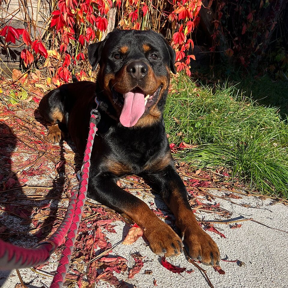 UPDATE 25.12.2025: Don befindet sich mittlerweile in physiotherapeutischer Behandlung, was er wirklich sehr gut mitmacht. Er hat Probleme im Rücken- und Hüftbereich. Zudem ist Don ein sehr massiver Rottweiler, was den gesamten Bewegungsapparat zusätzlich belastet. Aktuell wiegt er 51 kg und hat dabei eine gute, stimmige Linie. Im Umgang mit seiner Bezugsperson zeigt Don deutliche Fortschritte. Mit viel Geduld und vielen kleinen Schritten ist es inzwischen möglich, ihm einen Mantel anzuziehen, ihn zu bürsten und auch Tierarztbesuche – inklusive Impfen – sind für ihn deutlich stressfreier geworden. Don lässt sich wegschicken, Geschirr, Halsband und Leine anlegen und trägt seinen Maulkorb zuverlässig. An seiner Leinenführigkeit muss weiterhin gearbeitet werden, vor allem in reizintensiven Situationen. In ruhiger Umgebung ist Don draußen jedoch ein angenehmer Begleiter. Traktoren und Fußgänger interessieren ihn nicht. An unseren Schafen zeigt er starkes Interesse, auf manche Autos reagiert er ebenfalls und geht dann in die Leine. Mit Don liegt noch ein Stück Arbeit vor uns. Aufgrund seiner körperlichen Beschwerden würden wir uns sehr über Paten freuen, um seine notwendige physiotherapeutische Behandlung weiterhin sicherstellen zu können.