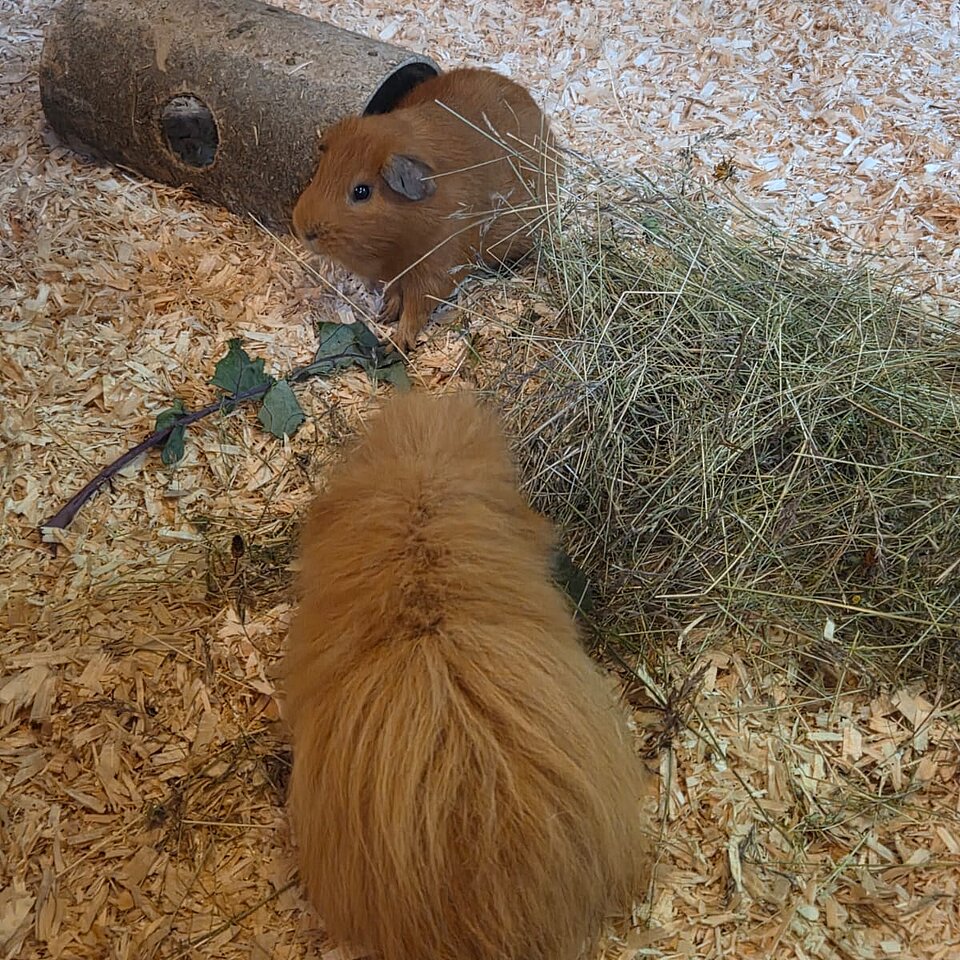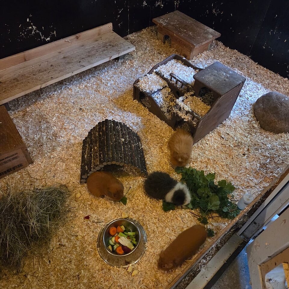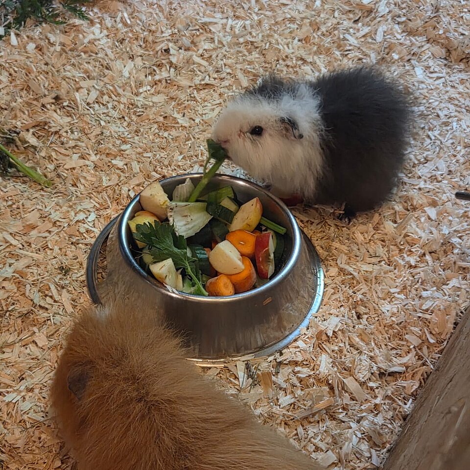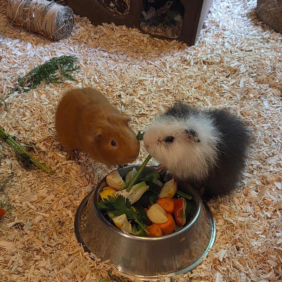 Die Schweinchen möchten auch im neuen Zuhause Artgerecht mit Frischfutter und Kräutern versorgt werden. Sie sind noch nicht zu 100% an ganzjahresaußenhaltung gewöhnt und benötigen daher auf jeden Fall einen ausreichend großen Stall der im Winter nicht unter ca . 10 Grad geht.
