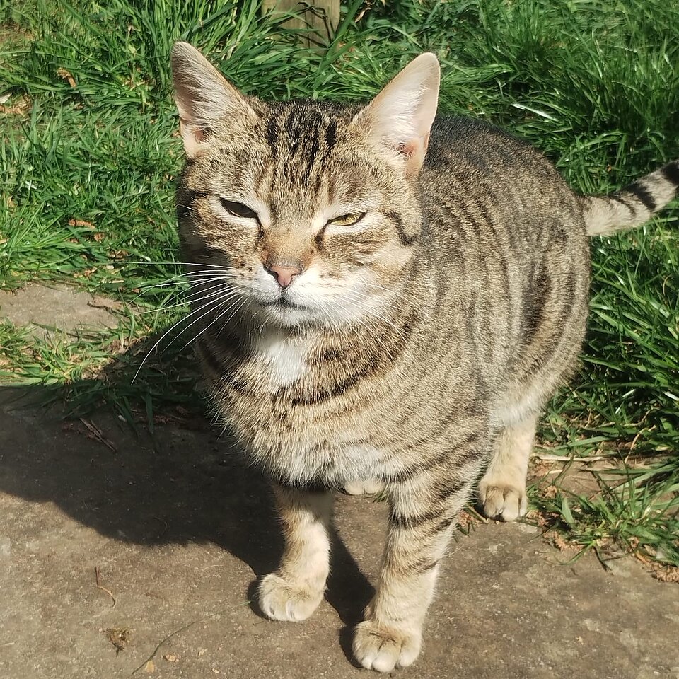 Quinn hält sich andere Katzen und Kater lieber auf Abstand. Leider tut sie das auch noch bei uns. Wir können sie nicht anfassen, aber vor uns weglaufen, das tut sie auch nicht. Wir würden das Verhalten als selbstbewusst und unsicher einstufen. Quinn ist Freigänger und sollte im neuen Zuhause auch raus können. Ein gesicherter Auslauf wäre durchaus auch denkbar.