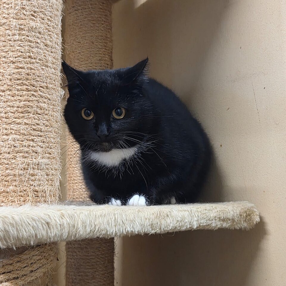 Scarlett ist dem Menschen gegenüber noch sehr skeptisch ,ängstlich. Bisweilen hat sie sich sehr gut in ihrer Gruppe eingelebt und es herrscht eine schöne Harmonie. Also wäre Scarlett auch eine tolle Partnerkatze. Sie ist noch nicht sehr lange bei uns ( stand Oktober 2025) und daher hat sie uns das mit den vielen Besuchen beim Tierarzt (kastration, impfungen) noch nicht wieder verziehen. Wir geben der süßen alle Zeit und hoffen , dass sich evt schon bald jemand in ihren schönen und tollen Charakter verliebt.